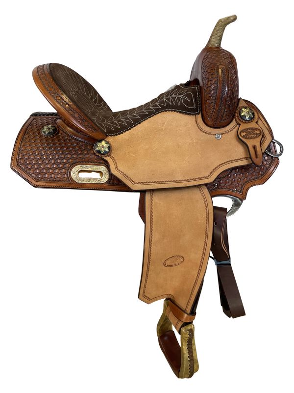 Not only does this Billy Cook saddle excel in functionality, but it also stands out with its stylish design. The 24.5" skirt, Rawhide covered stirrups, and 3d Block with Camo tooling showcase the attention to detail and quality craftsmanship that Billy Cook saddles are known for. Weighing approximately 28 lbs, this saddle strikes the perfect balance between durability, performance, and aesthetics, making it a must-have for any serious barrel racer looking to up their game.