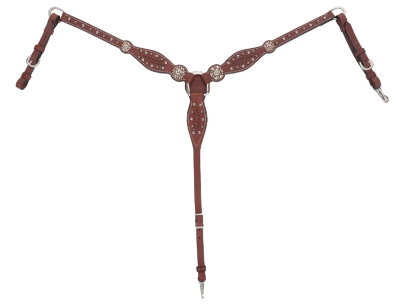 - Key Features: Alternating silver and brass spots, Quick connect snap, Heavy stainless hardware, Beautiful concho accents