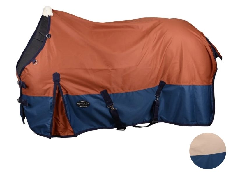 Tough-1 Storm-Buster West Coast Blanket 32-160Designed to help keep your horse warm and dry on windy and rainy days, this durable 600 Denier rain sheet has a comfortable fleece-lined neck and breathable nylon liner for all-day wear. The adjustable buckles on the chest have velcro to help hold them in place as you secure them. Classic double criss cross belly straps and elastic leg straps keep the blanket in place for all day wear in the pasture. Easily clean off the blanket by wiping it down or throwing it in the washer, and hanging to dry.