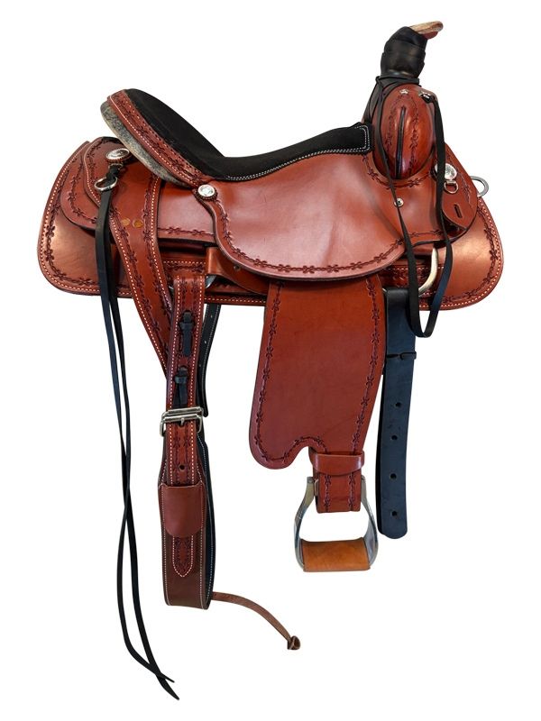 The horn is a roper post for maximum range of motion. Yet just because it's affordable doesn't mean we skipped on quality or fine details. The golden brown leather has been stamped with a barbed-wire border. You'll find this saddle to be high quality with years of service.