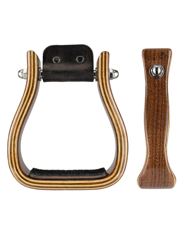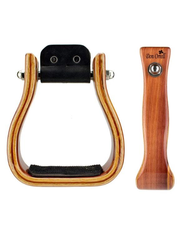 The Don Orrell Barrel Racer Stirrups are designed for performance riders who need stability and control at speed. Built from laminated wood with a sleek tapered profile and rubber treads, these stirrups help keep your foot secure so you can focus on every turn and sprint.