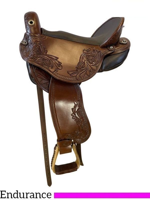 Elegant 7/8 Corner Flower tooling (BT1105) elevates the look, and medium flocking with an 8 cm channel helps promote even contact. Medium 68 cm fenders and rawhide stirrups round out a responsive, trail-friendly setup.