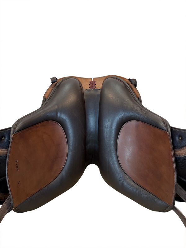 Beneath its classic exterior lies cutting-edge engineering designed for the ultimate comfort of both horse and rider. Built on a top-quality, lightweight carbon fiber tree, the adjustable gullet system allows the fit to transition from narrow to extra wide with the simple turn of a key. The comfy anatomically shaped wool-flocked panels conform to your horse's unique shape, and because they are not continuously attached to the channel, they move freely with the bend of the spine. This flexibility, combined with specialized shoulder relief panels, results in unobstructed gaits that are immediately noticeable in the saddle. For the rider, Velcro knee rolls allow for precise individual adaptation, while stirrup leathers designed to hang under the flap provide superior stability and a close-contact feel.