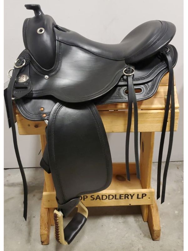 This 16” DP Saddlery Flex Fit Trail Ranger 1490 (Saddle 8642) is built on the FFM Flex Fit Adjustable Tree, allowing you to fine-tune the fit for a wide range of horses. Finished in black western skirting leather with a black nubuck equitation seat, this saddle delivers a sleek, understated look with exceptional comfort for long hours in the saddle.