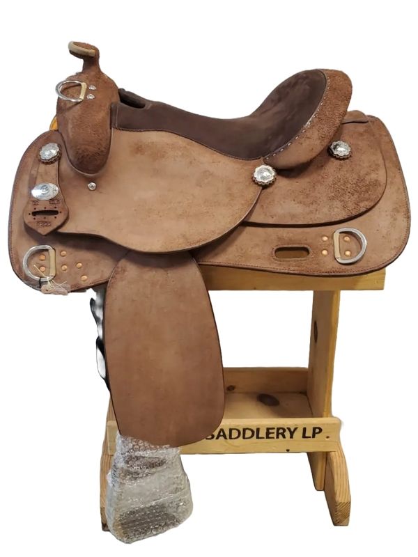 The DP Saddlery Trainer Roughout Plain Saddle 2206-7934 in a 15.5" seat is designed for riders who need durability, grip, and a bit of added refinement. Built on the Classic Line 8550 tree in size 02, this saddle provides a balanced, dependable fit for a broad range of western horses. The Havanna Antique roughout leather—oiled twice—offers enhanced depth of color, improved feel, and long-lasting resilience, making it ideal for serious arena work or training young horses.
