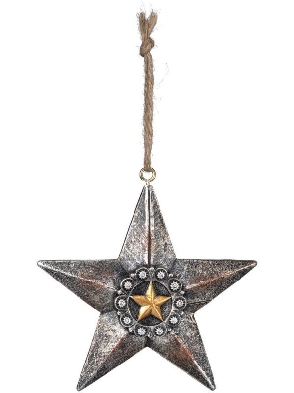 Adorn your home with the distinguished JT International Star Ornament 91-1133, a unique piece crafted from durable resin that captures the eye with its sophisticated "metal look." This striking ornament features a rustic yet elegant blend of deep black and earthy brown shades, providing a rich, textured backdrop for the dazzling gold center star that immediately draws the gaze. Perfectly embodying a blend of rugged charm and refined sparkle, it comes complete with a natural brown twine hanger, measuring approximately 3-1/2 inches, ready to bestow a touch of warm, festive grandeur to your holiday display.