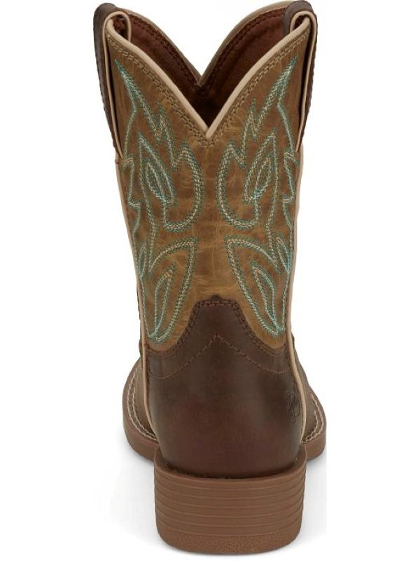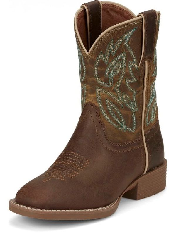 Searching for the perfect boot for your little one? The Kids Justin Boots Canter Boots JK7515 are the ideal blend of rugged durability and classic Western style. Crafted for young adventurers, these boots feature a durable brown leather exterior with intricate green and white stitching, adding a touch of Western flair. The easy pull-on design ensures a snug fit, making them perfect for active kids on the go. With a sturdy rubber sole for reliable traction, these boots are built to withstand every playful adventure, providing both comfort and durability. They boast a Full Grain Leather upper, a Cushioned Insert insole for all-day comfort, and a fashionable Square Toe shape. Perfect for everyday wear, the Cantor Junior Kids Boots are a must-have for any little cowboy or cowgirl ready for their next big adventure.