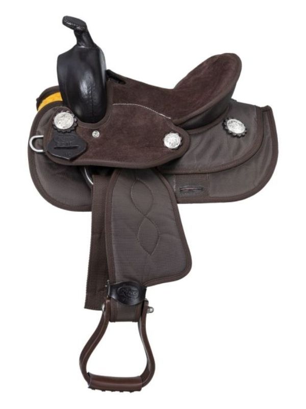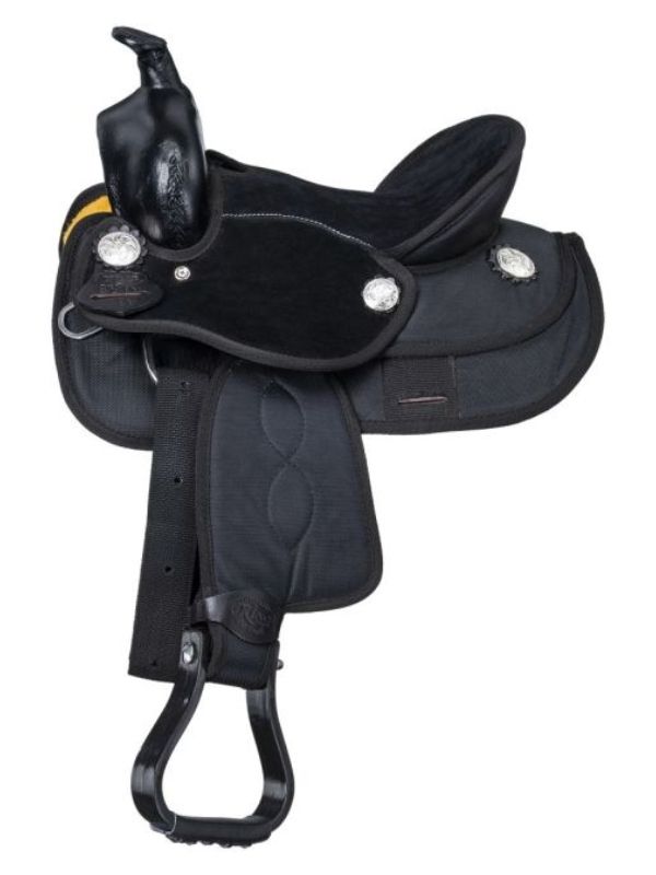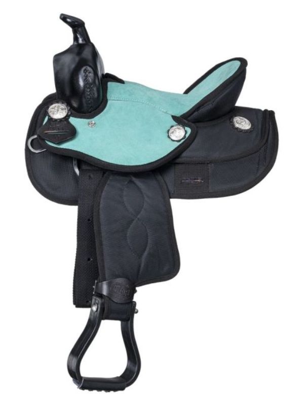 The deep suede seat and jockeys provide just the right amount of grip to help you stay centered when it counts. Cordura nylon fenders, polymar stirrups, and a round skirt keep overall weight down while making cleanup quick and simple. Finished with Tough1® Quick Change stirrup buckles and a nylon tie strap/off-billet, this saddle is ready to ride straight out of the box.
