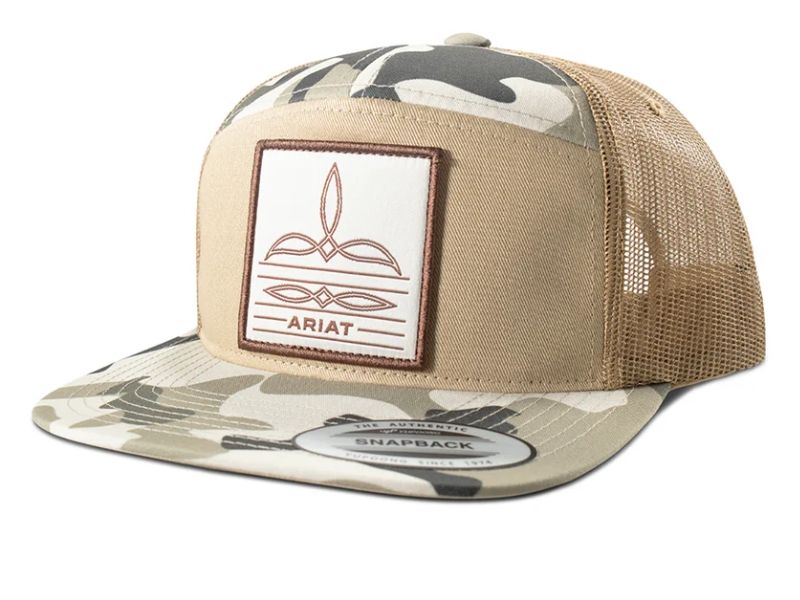 Style meets function. Whether you're on the ranch, out on the trail, or off-duty in town, the Ariat 7 Panel Camo Boot Stitch Cap delivers the perfect blend of Western edge and everyday wearability.