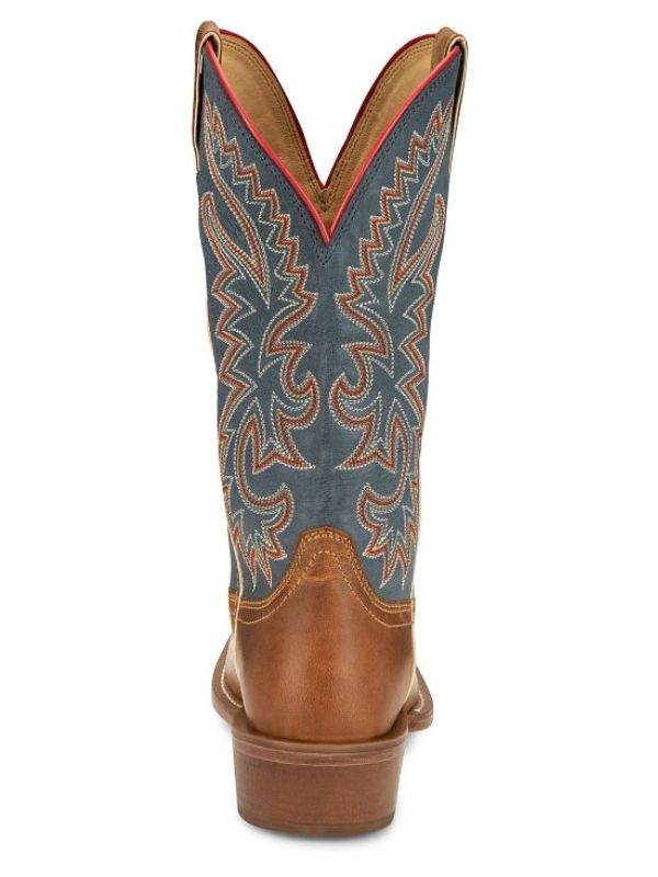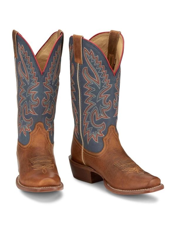 The Men’s Justin Show Off 13” Western Boot delivers a bold mix of tradition and style. Made from premium full-grain leather, it features a striking embroidered shaft and a comfortable medium square toe that gives it a modern feel. Durable pull straps make it easy to slip on, while the timeless cowboy heel completes the authentic look.