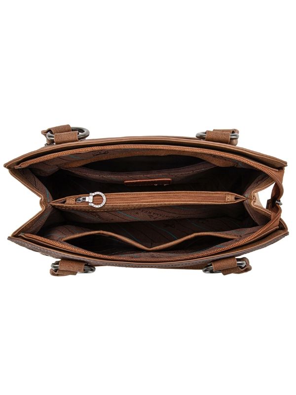Wrangler Embroidered Bi-Fold Wallet WG145Crafted with a soft suede-feel PU leather, the Montana West Cut-Out Embroidered Concealed Carry Tote MW1325G delivers bold Western detailing with practical concealed carry functionality. With boot stitch accents, an Aztec concho, and a roomy interior, this tote is designed for both style and security.