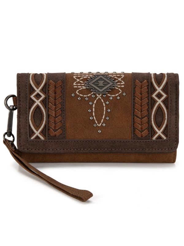 The Montana West Cut-Out Embroidered Wallet MW1325 brings together classic Western design and functional organization. With boot-stitch detailing, Aztec conchos, and a removable wristlet strap, this wallet is the perfect blend of style and convenience for your daily carry.