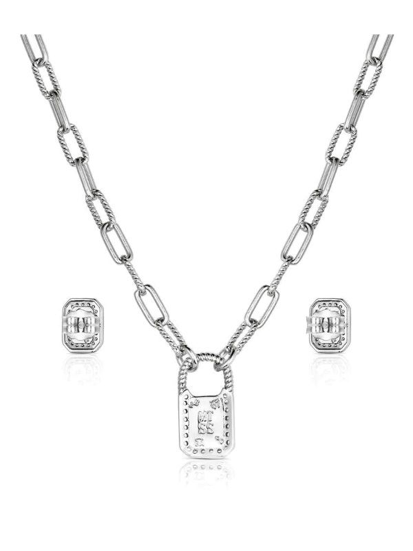 Unleash a bold statement of elegance with the Montana Silversmith Turquoise Glam Jewelry Set. This striking duo features square-cut crafted turquoise stones framed by brilliant cubic zirconia, perfectly blending modern chic with authentic Western soul. Suspended from a contemporary 16-inch chain link necklace, the pendant serves as a vibrant focal point, while matching earrings with hypallergenic stainless steel post backs provide a cohesive, polished finish. Whether you're refreshing your favorite neutrals or heading out for a night under the Big Sky, this set offers that elusive "just right" amount of flair.