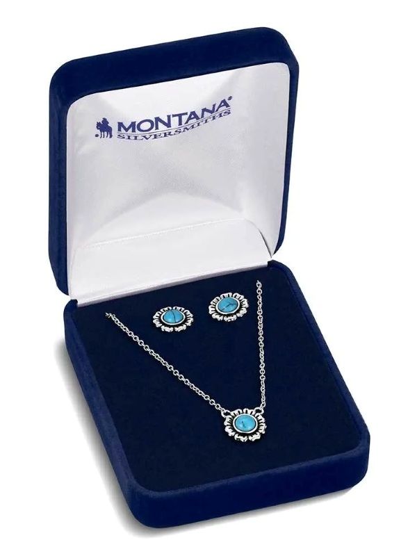 Capture the essence of a fresh Montana dawn with the Morning Glory Jewelry Set. This stunning duo features oval turquoise stones cradled in intricate, fine-silver detailing that evokes a soft, floral-inspired elegance. Whether you're dressing up for a sunset gala or adding a touch of Western grace to your favorite denim-and-tee combo, this set is designed for effortless versatility. Because each piece of crafted turquoise is unique, the subtle variations in stone color ensure your set is a one-of-a-kind treasure, perfectly reflecting the natural beauty of the Big Sky state.