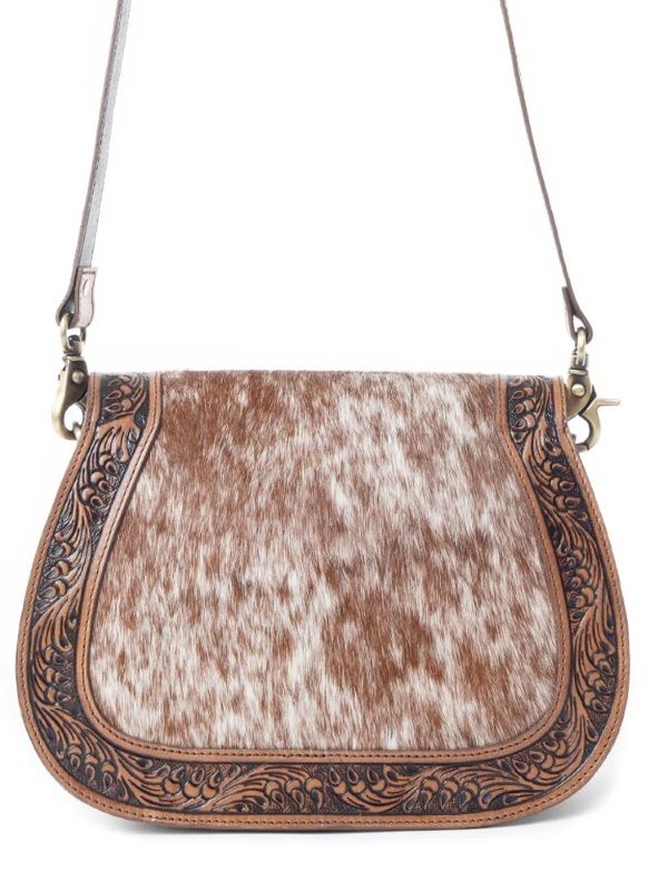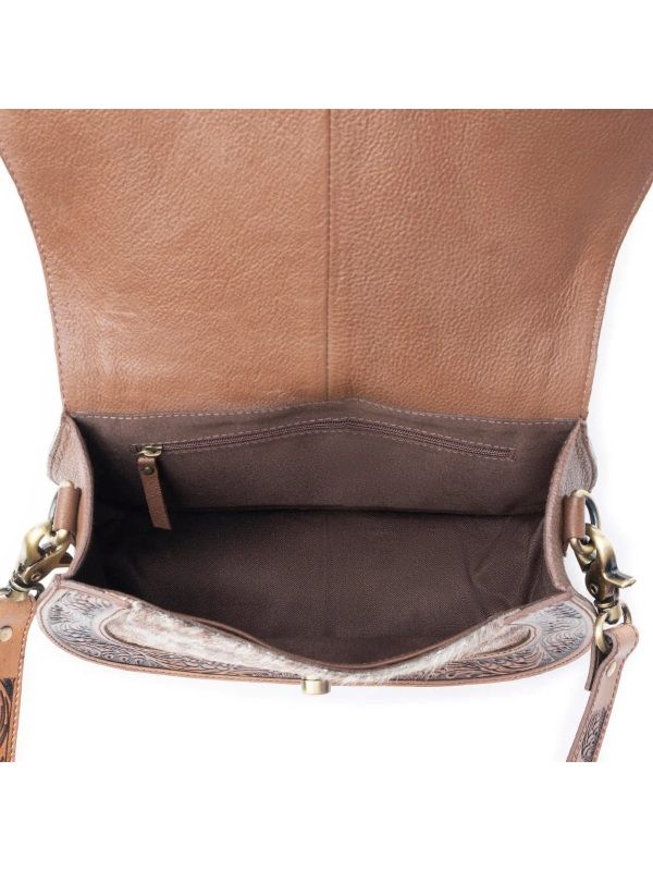 Beyond its striking looks, this bag is a masterclass in functional craftsmanship. Constructed from premium hairon and leather, it features a secure flap top that opens to reveal organized zipper-close compartments, ensuring your essentials stay safe and accessible whether you're at the rodeo or on a lunch date. With dimensions of 11" W x 7" H x 4" D, it offers a spacious yet sleek profile. For ultimate versatility, the bag includes a detachable and adjustable 26-inch matching leather shoulder strap, allowing you to customize the fit to your comfort.