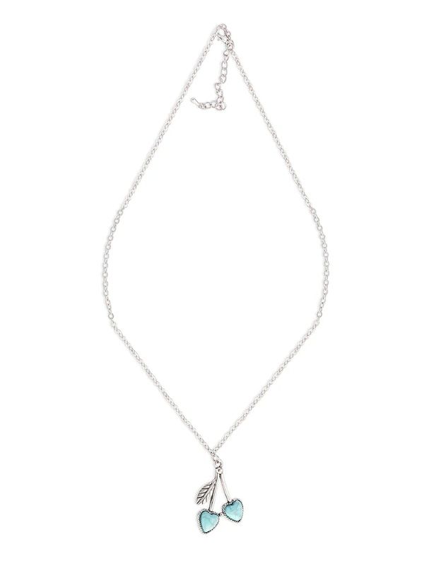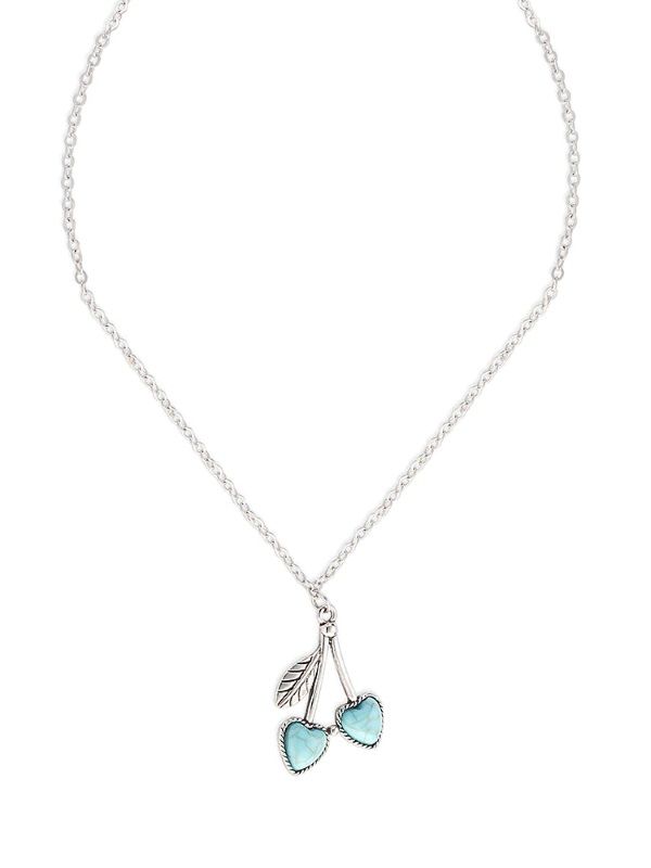 Myra Green Fork Necklace S-11015Fall in love with the whimsical charm of the Myra Dangling Hearts Necklace (S-11641), a piece designed for those who carry the spirit of the West in their hearts. Sweet meets Southwest in our turquoise cherry pendant necklace. Two heart-shaped stones nestled with a delicate silver leaf create a charming fusion of romance and Western flair on a classic silver chain you'll love. Whether you are dressing up for a special evening or adding a touch of personality to your favorite denim jacket, this necklace serves as a beautiful reminder of nature's elegance and heartfelt style.
