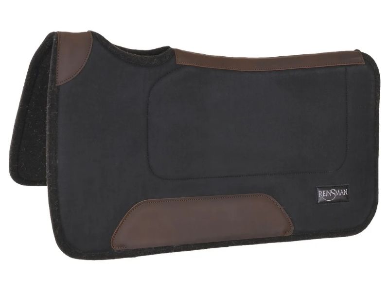 The Reinsman Rancher Square Contour Wool Saddle Pad is built for everyday use on the ranch or trail. Made from 7/8" thick wool felt, this pad naturally absorbs shock, wicks moisture, breathes, dries quickly, and molds to your horse’s back for a secure, comfortable fit with minimal slippage.