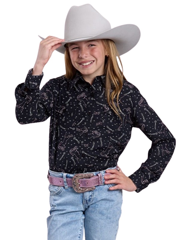 Girls Roper Constellation Print Western Blouse 0590-2054