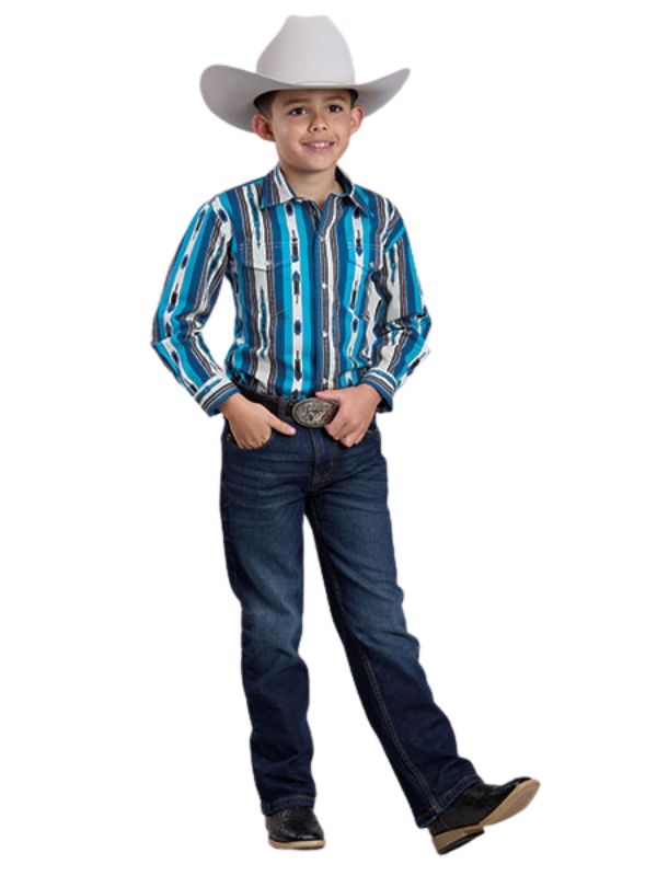 Roper Boy's Long Sleeve Blue Stripe Western Snap Shirt – 03-030-0485-0201