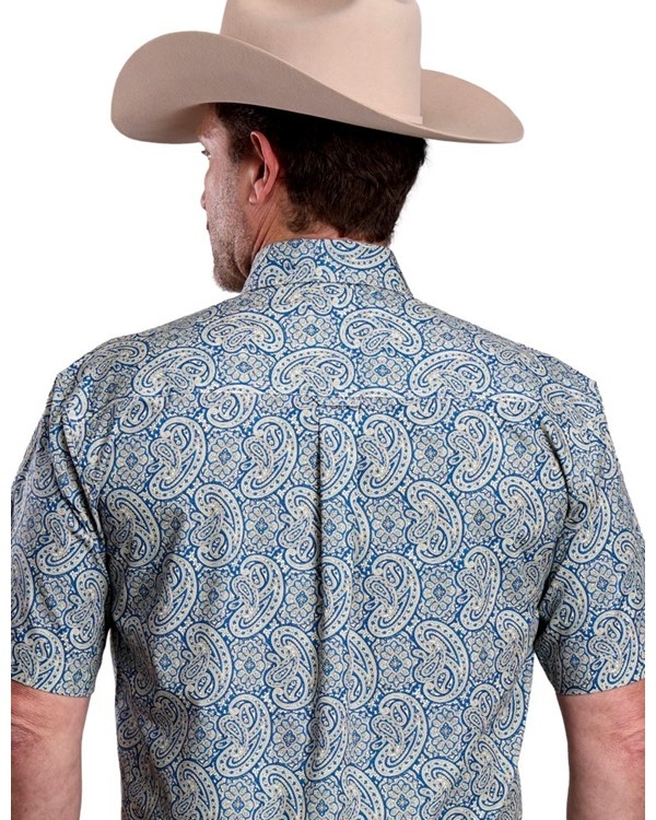 Roper Men's Long Sleeve Western Shirt 0278-3104Step into classic western style with this men's short sleeve shirt from Roper’s Amarillo Collection. Designed with a sharp blue line paisley print, this shirt blends timeless western character with a fresh, summer-ready look.