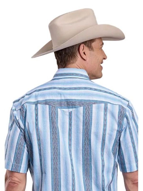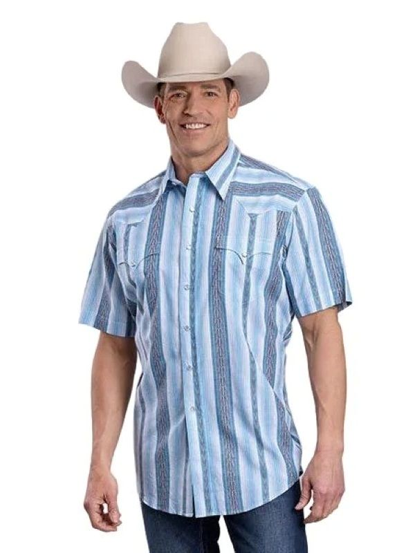 Roper Men's Short Sleeve Vertical Performance Striped Snap Shirt