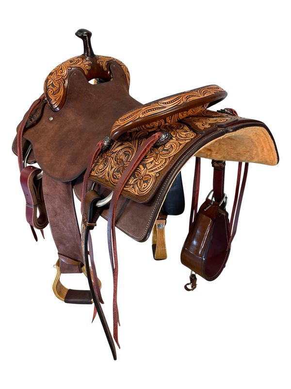 A true ranch cutter saddle with classic style and work-ready construction — built to hold up, ride right, and look timeless doing it.