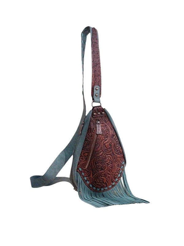Trinity Ranch Tooled Fringe Crossbody Sling Bag