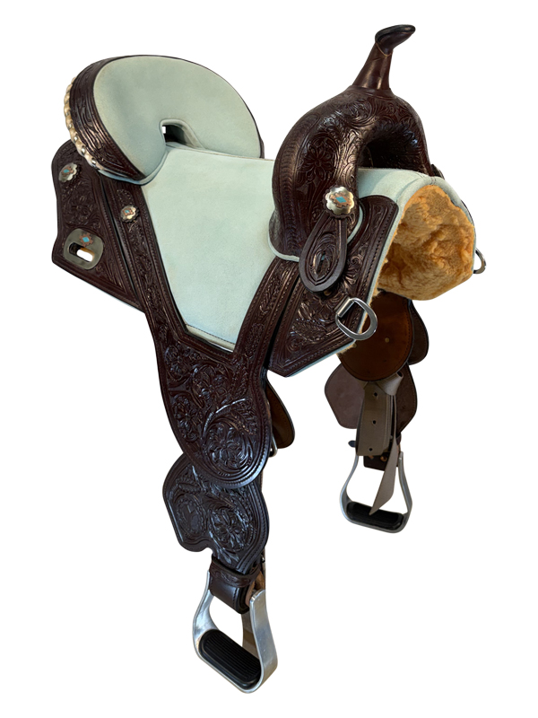15.5Inch Used Circle Y Tammy Fisher Blue Roan Treeless Barrel Saddle Wide Tree 1319