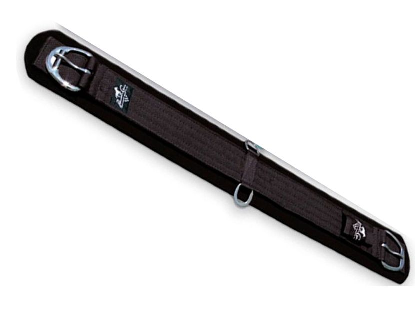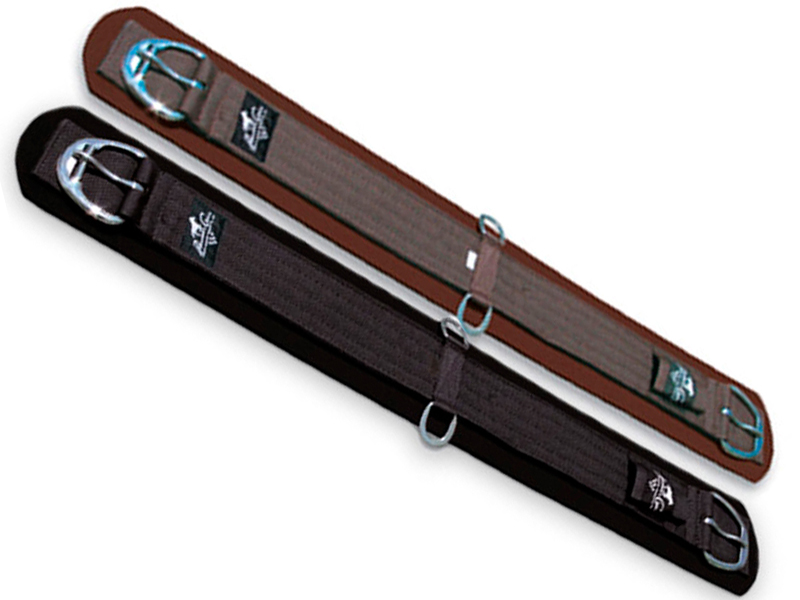 The SMx Western Cinch sets the standard for the comfort of your horse. The waffle-patterned texture on the bottom is non-slip, so your saddle stays securely in place. The neoprene creates natural lubrication (sweat), eliminating galling and girth sores and won't harbor bacteria. Heavy-duty, reinforced, stainless steel center D-rings are long lasting, durable, and won't rust. Stainless steel roller buckle makes cinching easier. Easy to clean: peel neoprene from webbing and wash separately. Available in black and chocolate.