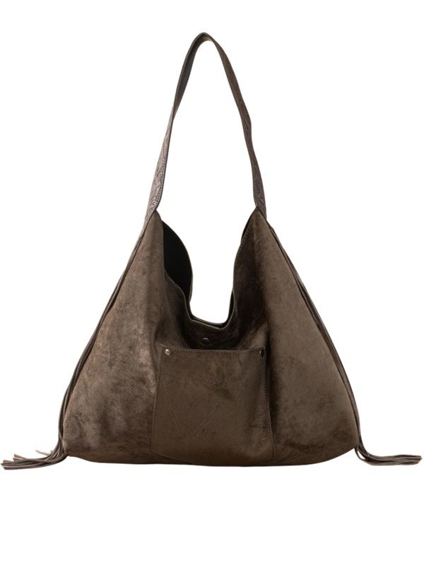 Embrace your inner wanderer with the Wrangler Hobo Bag WG239-9182, a stunning blend of rugged heritage and modern bohemian flair. Crafted from a premium mix of soft PU, polyester, and suede-like leather, this bag offers a rich, tactile experience that feels as luxurious as it looks. The design makes a bold statement with its iconic Wrangler logo applique on the front and eye-catching fringe that adds movement to every step. Topping off its unique aesthetic is a single floral tooled strap, providing a vintage, artisanal touch that sets you apart from the crowd whether you're at a festival or on a weekend getaway.
